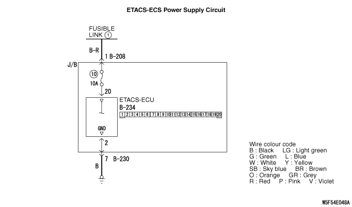 STEP 3. Check the wiring harness between B-234 ETACS-ECU connector terminal No.20 and fusible link (1).