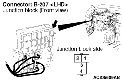 Prior to the wiring harness inspection, check junction block connectors B-208, B-231, B-212 and intermediate connector B-118, and repair if necessary.