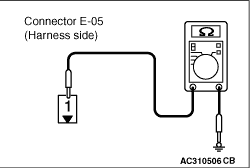 STEP 12. Check the wiring harness between E-05 rear window defogger connector terminal No.1 and earth.