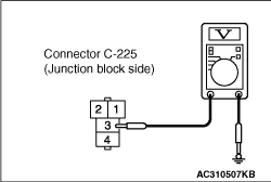 STEP 7. Voltage measurement at B-225 rear window defogger relay connector.