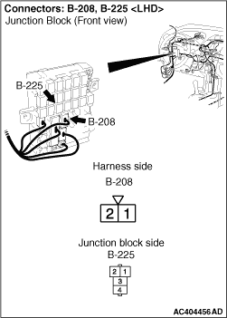 note Prior to the wiring harness inspection, check junction block connector C-208, and repair if necessary.
