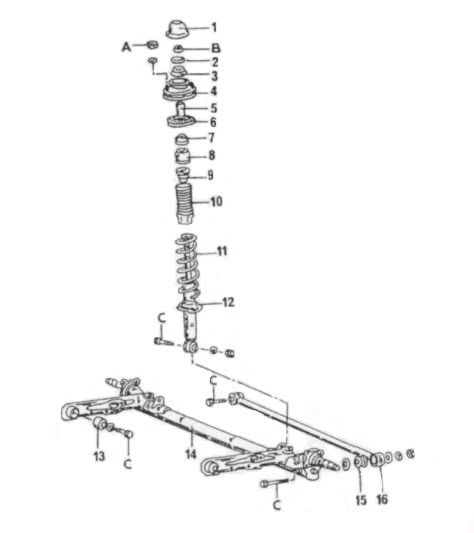 14. ЗАДНЯЯ ПОДВЕСКАЗадняя подвеска состоит из кожуха полуоси с продольным рычагом подвески на каждой стороне, пружин, поперечного рычага подвески (тяги Панара, т.е. поперечной тяги, шарнирно закрепляемой на кузове и балке моста) и телескопической стойки. Стабилизатор поперечной устойчивости установлен во внутренней части кожуха полуоси