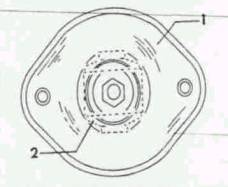 • Вытяните шток поршня, насколько это возможно, и установите демпфер (9), колпачок, собранный с манжетой (8 и 10), распорку (5), втулку (7), опору пружины (6), верхний подшипник стойки амортизатора (4), верхнюю втулку (3) и шайбу. Расположение подшипника стойки амортизатора изображено на рис. 221; другими словами, он должен находится в таком положении относительно нижней подвески стойки амортизатора. В этом положении затяните гайку штока поршня с моментом затяжки 20-25 Нм. Поскольку при этом необходимо законтрить шток поршня, как показано на рис. 218, очень трудно получить требуемый момент затяжки, поэтому затяните гайку приблизительно, чтобы шток поршня не вращался вместе с ней, а после этого, используя динамометрический ключ, затяните гайку с требуемым моментом затяжки.