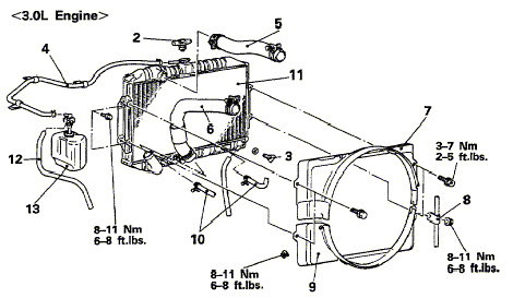 Все элементы охлождения были исправны, но при движении на большой скорости 100 км.ч и больше происходило следующие: Расширительный бочек заполнялся полностью и из него наружу выливалась жидкость а также показатель температуры показывал повышения температуры, при движении в пробках и на маленькой скорости все было в норме, термостат исправен. Были подозрения на забитость радиатора, мыли ничего не помогало После замены виско муфты все вернулось на прежнее место, рассширительный бочек заполняется до отметки МАХ и дальше не заполняется, показания температуры двигателя пришли на свое место. Вот так мы выличили эту небольшую болезнь. Расширительный бочек под номером 13. ![]() |
