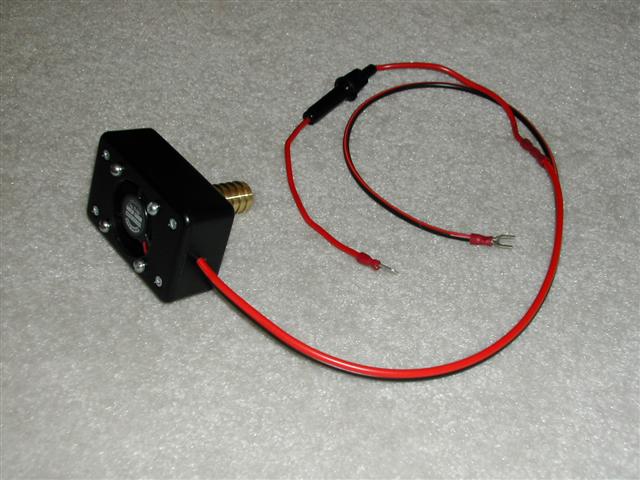 01/10/2005 - On all the kits built since January 2005, I started using a 6.9 CFM fan instead of a 4.8 CFM fan. The higher airflow will draw more air to the temp sensor quicker, regulating the system even better. The noise penalty is 2.0 db according to specs - 25.5 db for the new fan vs. 23.5 db for the older model. The 2 db increase is not noticeable.