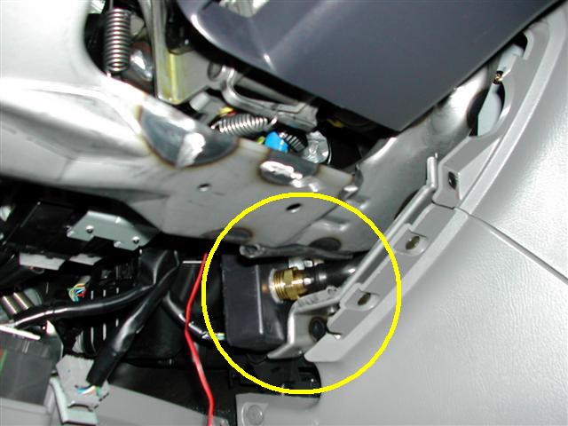 Step 9 - Turn the key to Run, make sure the CC-Fix fan is blowing air. Hold a thread about 1/2 - 1/4 inch in front of the temperature sensor by the ignition key. The thread should move towards the sensor opening. Assemble the under-dash panel with 2 screws. ENJOY the much improved Forester Climate Control :) |