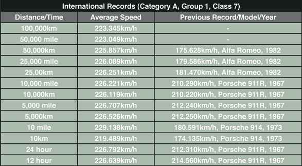 All three cars ran at 230km/h (142.9 mph) and broke Porsche’s international record for 10,000 miles.