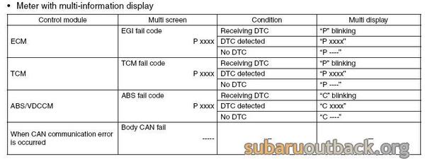 The 2005 thru 2009 model year Legacy and Outback can display Diagnostic