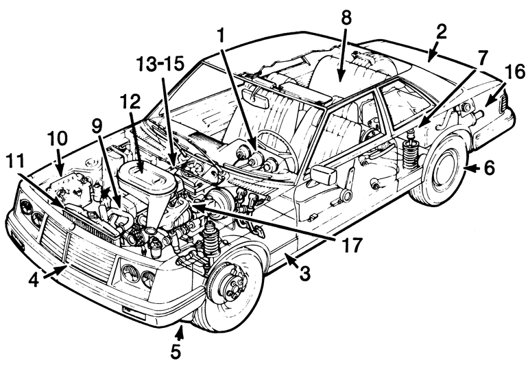 | Fig. 1: You should check these points when buying a used car. The "Used Car Checklist" gives an explanation of the numbered items |