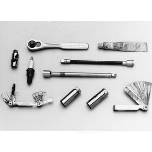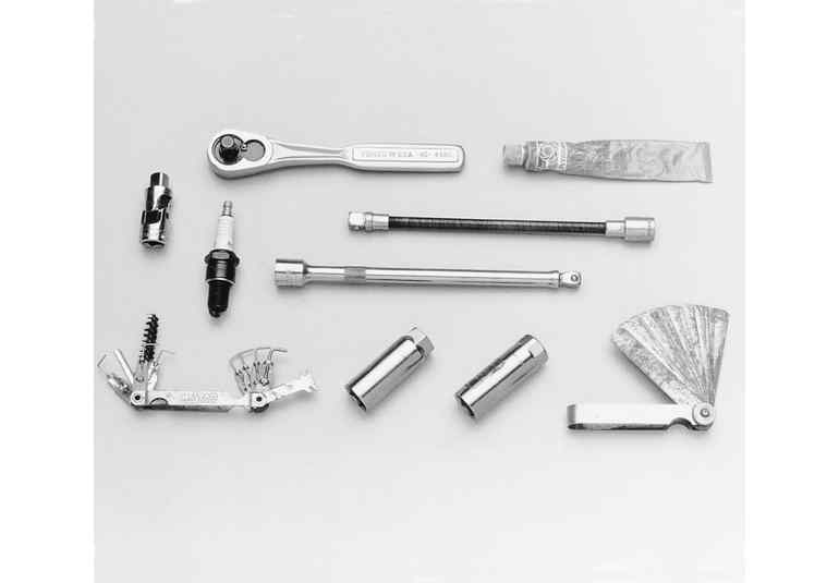 | Fig. 1: A variety of tools and gauges are needed for spark plug service |