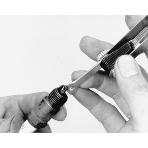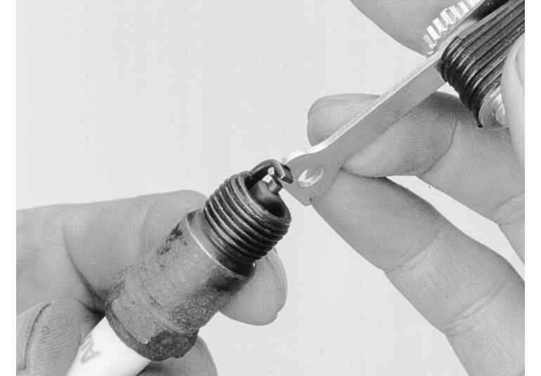 | Fig. 1: Always use a wire gauge to check the electrode gap |