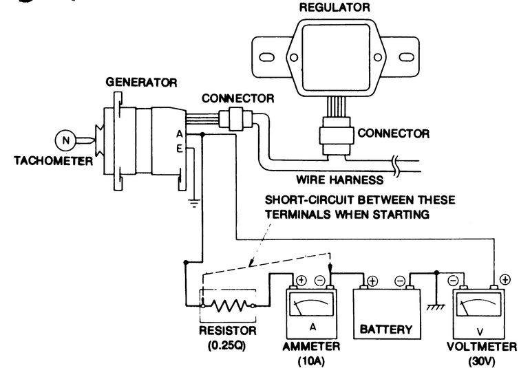 NOTE: The ammeter reading should be below 5 amps. Recharge