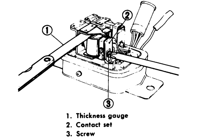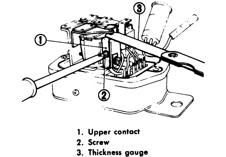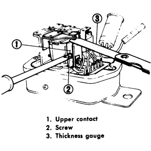 the voltage coil. Adjust the gap by bending the lower contact, as necessary.