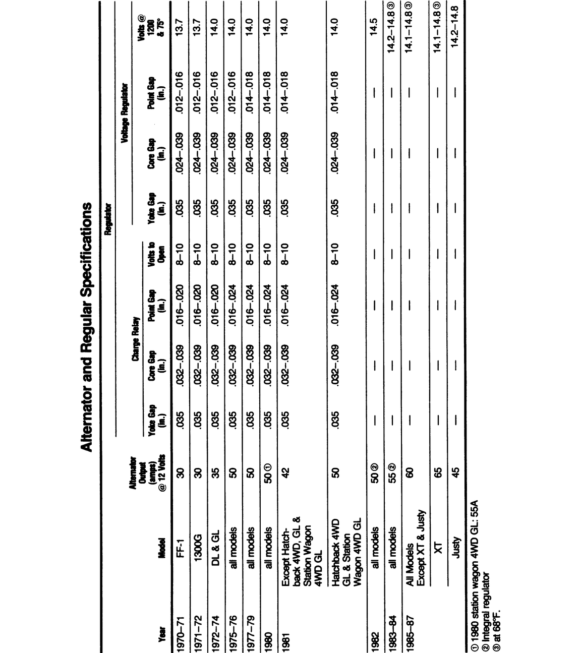 Regulator Specifications chart. Adjust both sets of gaps in the following