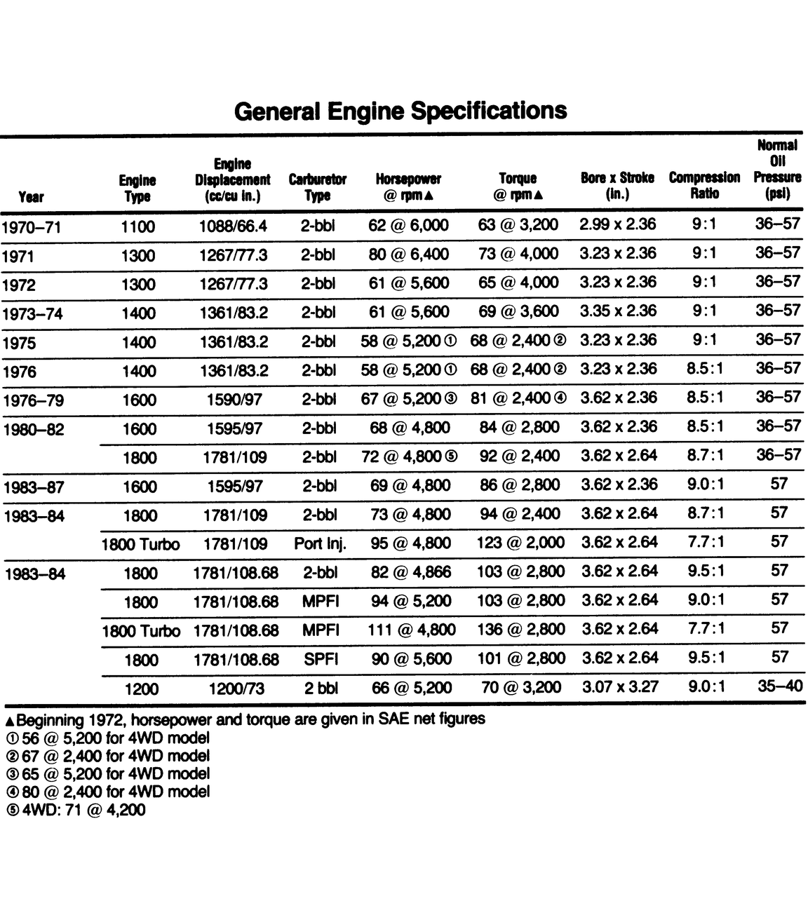 pressure specifications in the Tune-Up Specifications chart in Section 2.