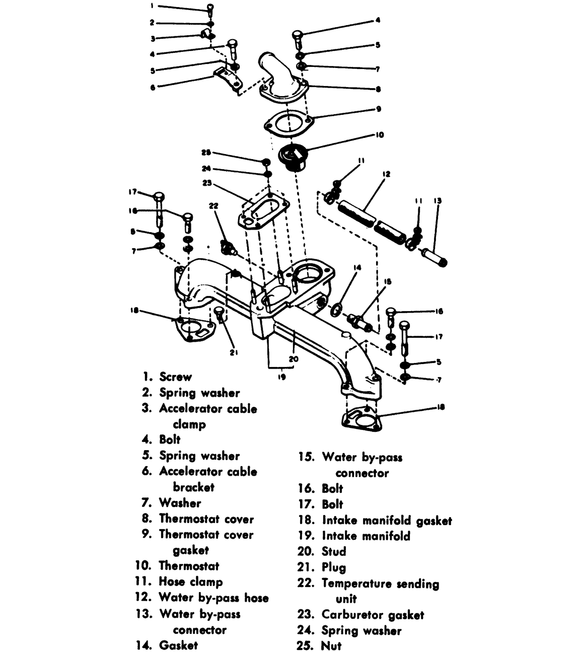 | Fig. 1: A common carbureted intake manifold assembly found on models covered by this manual |