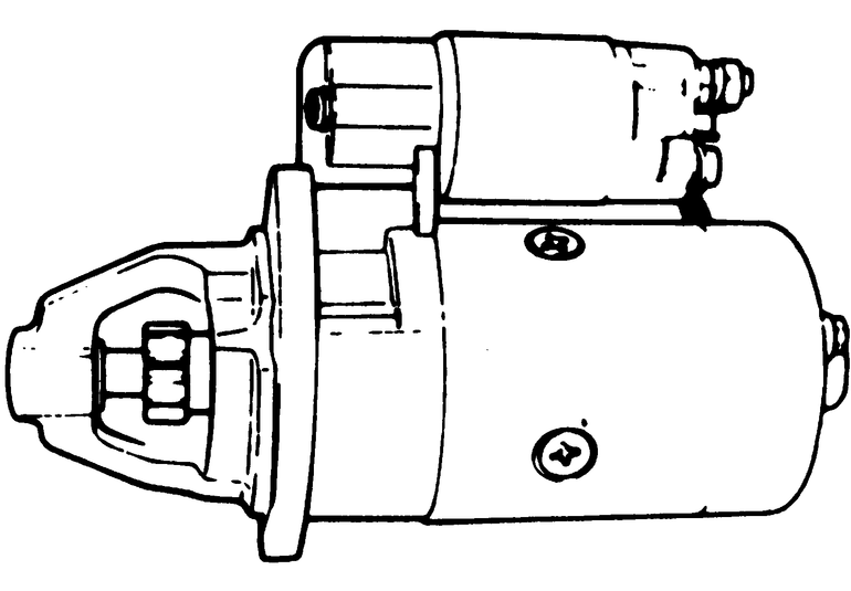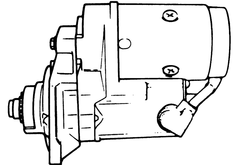 The direct drive starter, on the 1200cc and 1600cc engine, uses a permanent magnetic field system instead of field coils inside the yoke. A spring steel retaining ring is used to retain the magnet, and keep it from springing out when an unexpectedly strong shock is applied to the yoke circumference. When the starter is engaged, current flows through the pull-in and holding coils. This causes the plunger to be pulled in, applying pressure to the shifter lever, which pushes the pinion out. Current flows through the armature and starts it to turn the pinion at a moderate speed, meshing it with the ring gear. When the main switch contacts are closed, full current flows through the armature, fully meshing the pinion with the ring gear, starting the vehicle.