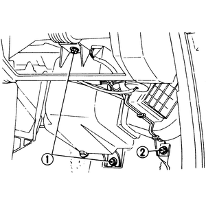 unfastening the bolt at (2). Do not disturb the evaporator mounting