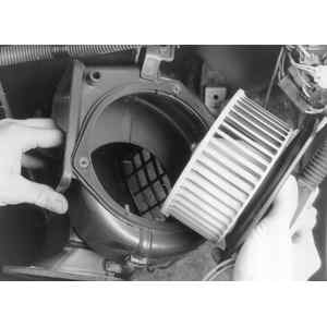 NOTE: Some Subaru owners report that the blower may sometimes rub the case in which it is mounted as it warms up. If this seems to be the case (you hear a rubbing noise after the blower has run for a while), ascertain that the blower is properly mounted to the shaft. If so, replace the motor assembly.