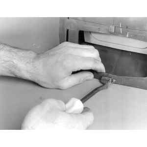 | Fig. 1: Use a prybar to disengage the retaining tabs