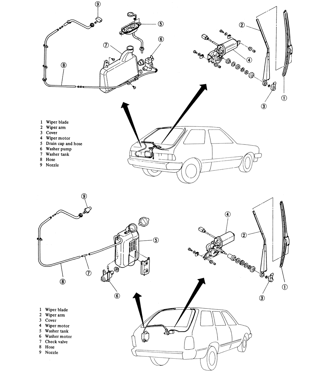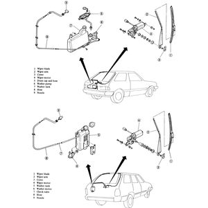 Fig. 1: Rear wiper and washer components on the Hatchback