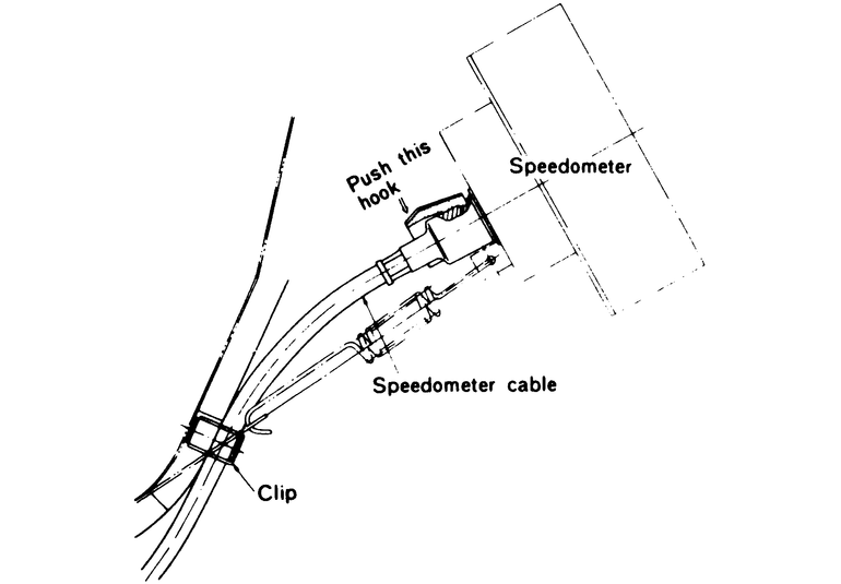 Fig. 1: Push on the hook to disengage the speedometer cable