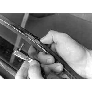 To replace the complete wiper blade, lift up on the locking lever and slide the blade off of the wiper arm.