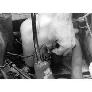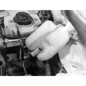 Fasten the reservoir retaining fasteners and connect the hoses.