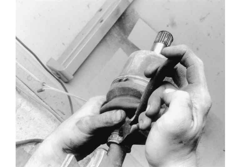 | Fig. 2: Use pliers to remove the inner band from the CV-boot |