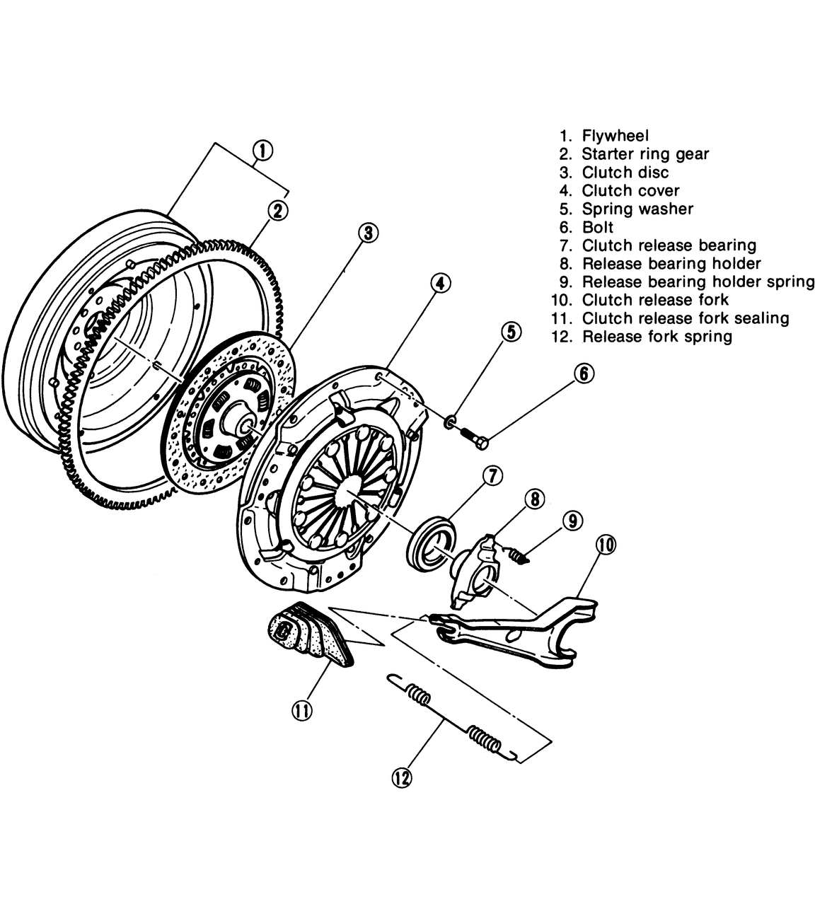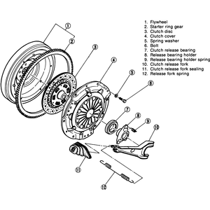 | Fig. 1: Exploded view of the clutch assembly found on Subarus |