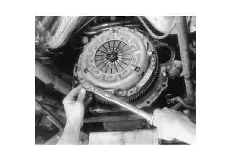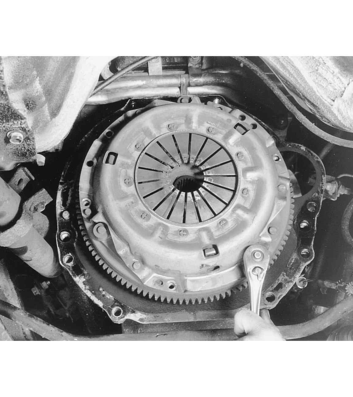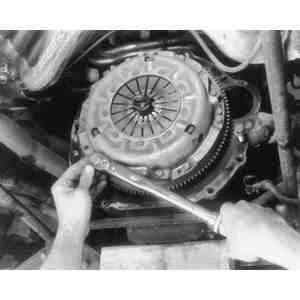 | Fig. 2: Removing the clutch and pressure plate bolts |