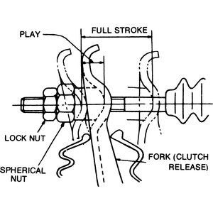 Remove the clutch fork return spring and loosen the locknut on the fork adjusting nut.