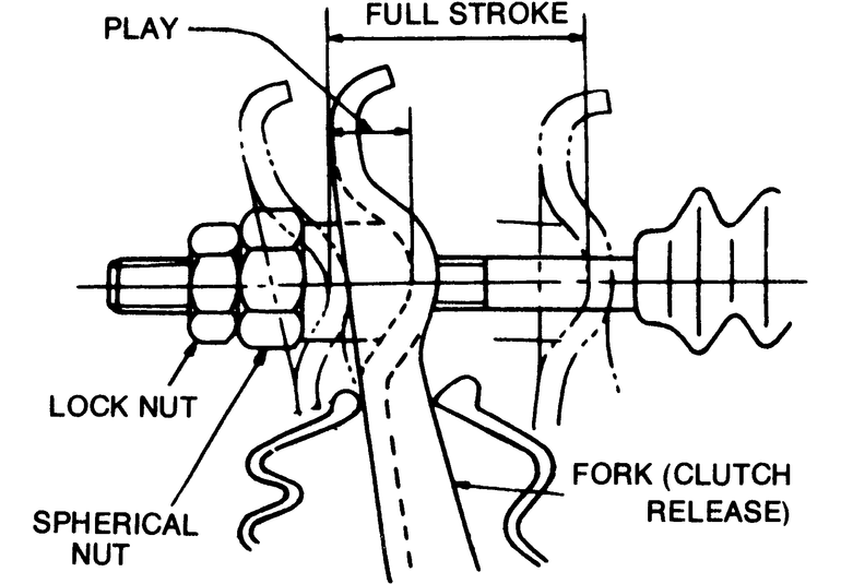 Turn the adjusting nut (wing nut) until a release fork free-play of 0.13–0.17 in. (3.5–4.5mm) is obtained.
