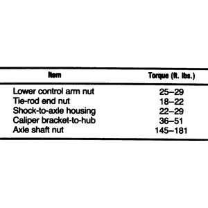 | Fig. 5: Front bearing and hub torque specifications — 1976–84