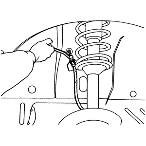 - Remove the nuts which attach the upper end of the strut assembly to the