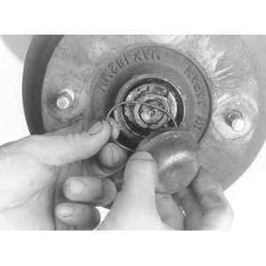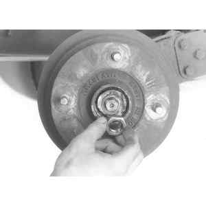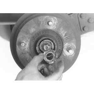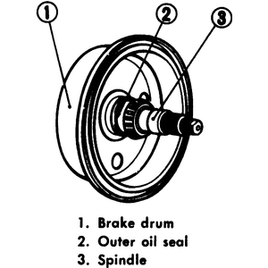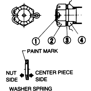 | Fig. 5: On 1980–84 4WD cars, install the cotter pin (1), castellated nut (2), spring washer (3), and spacer (4) as shown |