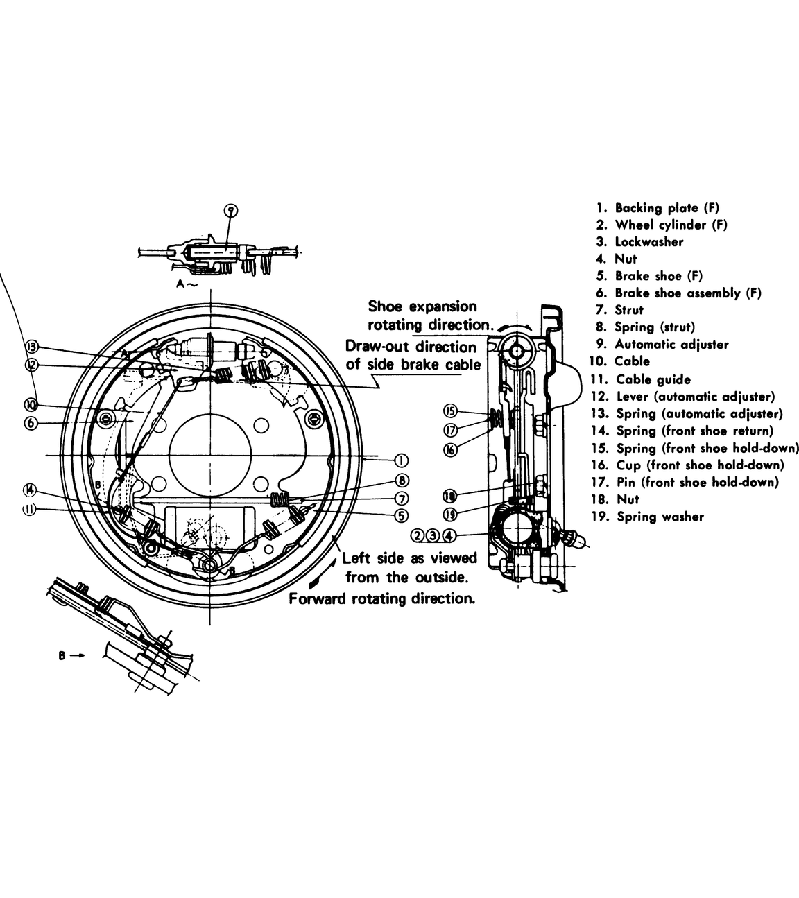 | Fig. 3: Drum brake assembly — 1972–75 DL models |