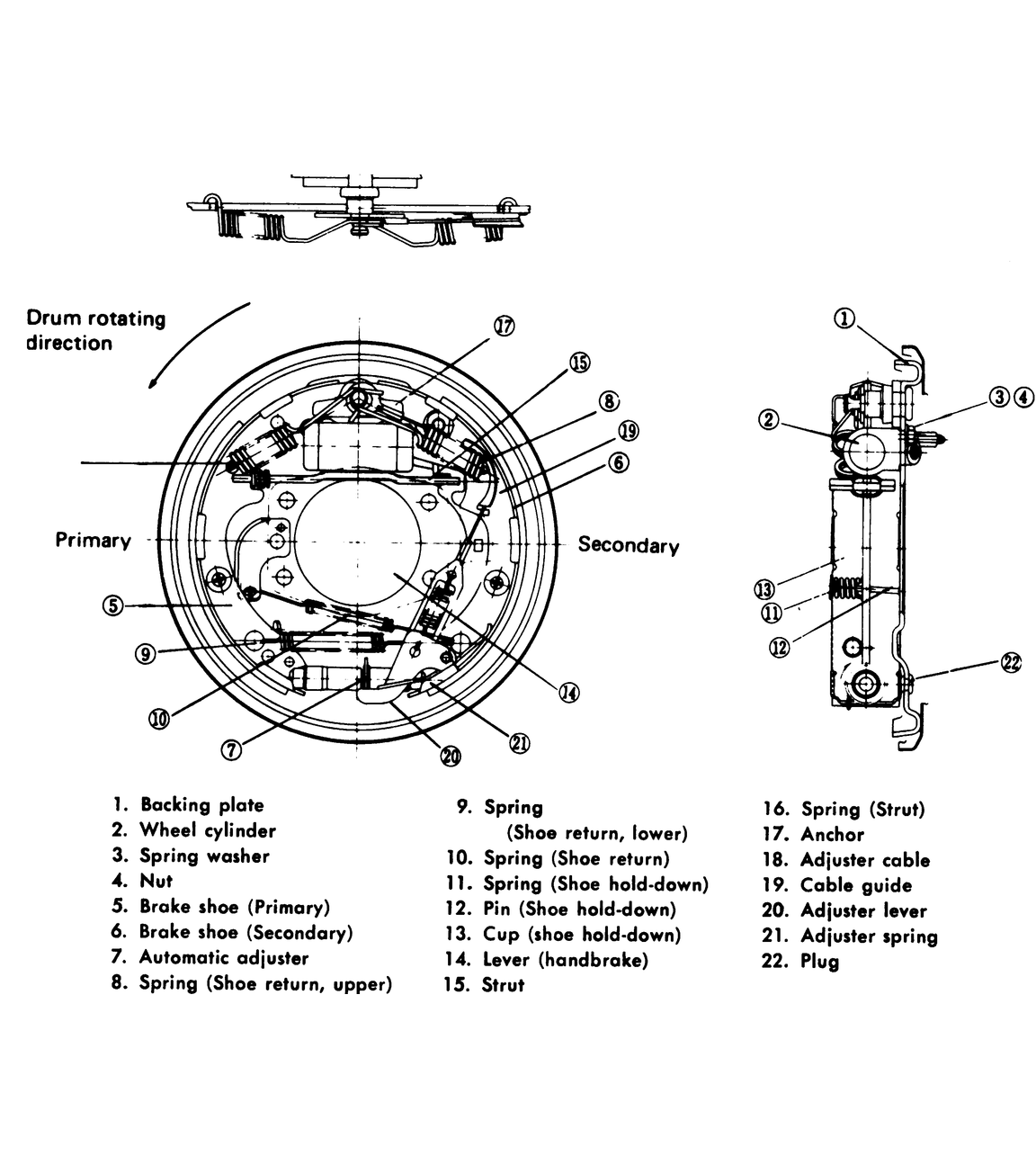 | Fig. 2: Drum brake assembly — ff–1 and 1300G models |