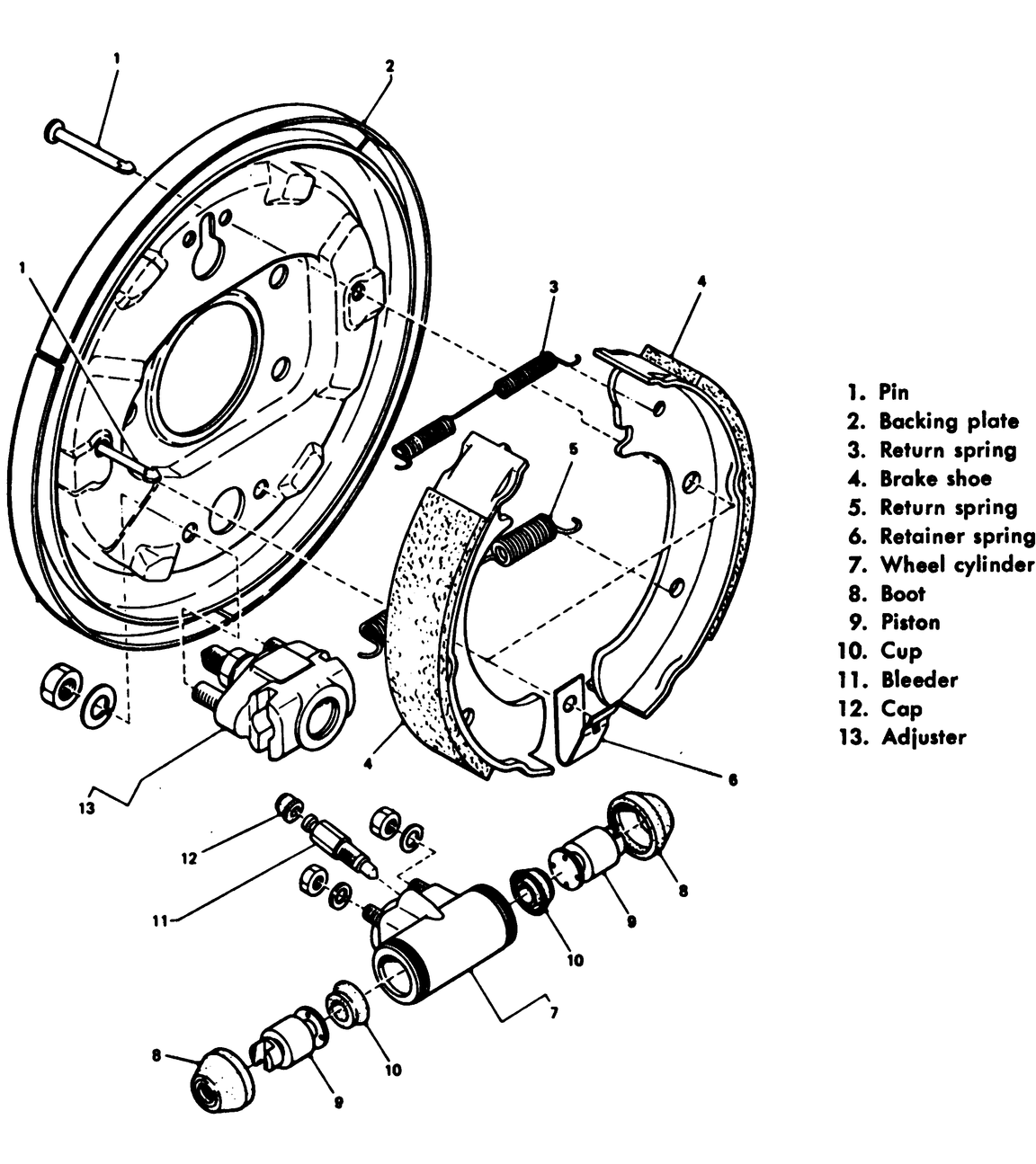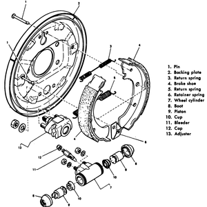 | Fig. 1: Exploded view of the rear brake assembly found on Subarus |
