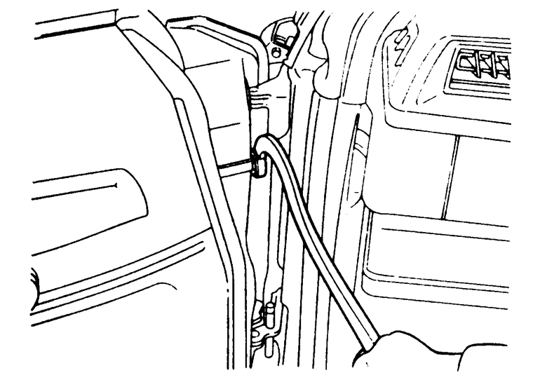 - Remove the spring pin and the upper and lower hinge-to-body attaching bolts.