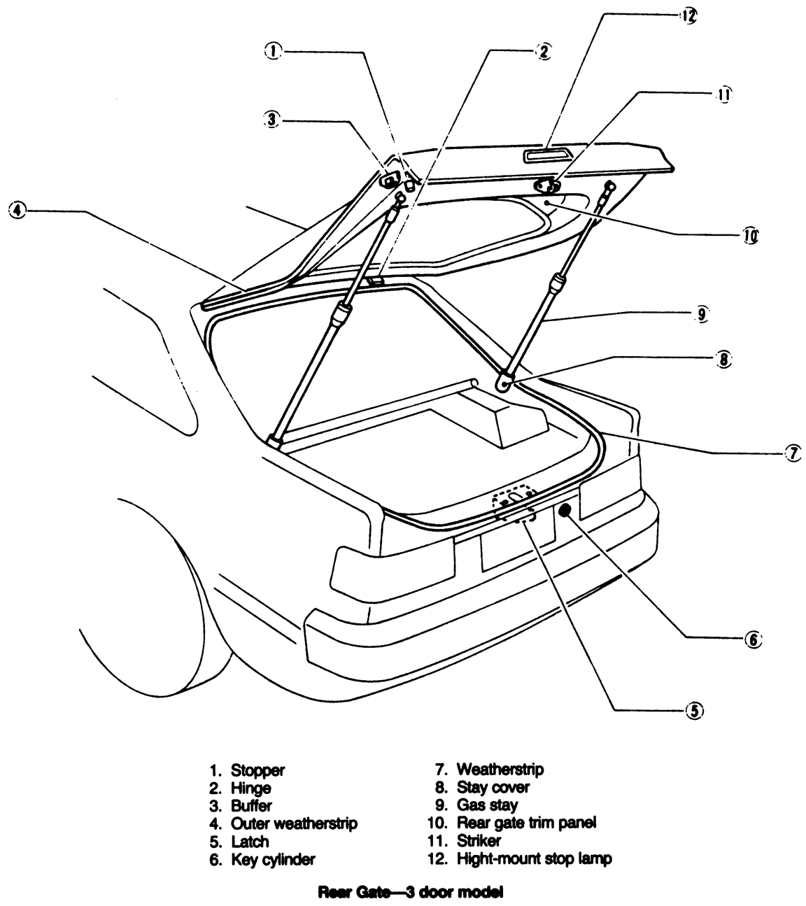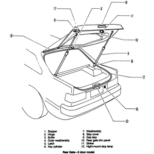 - Install the gas stays to the rear gate and tighten the stud bolts.