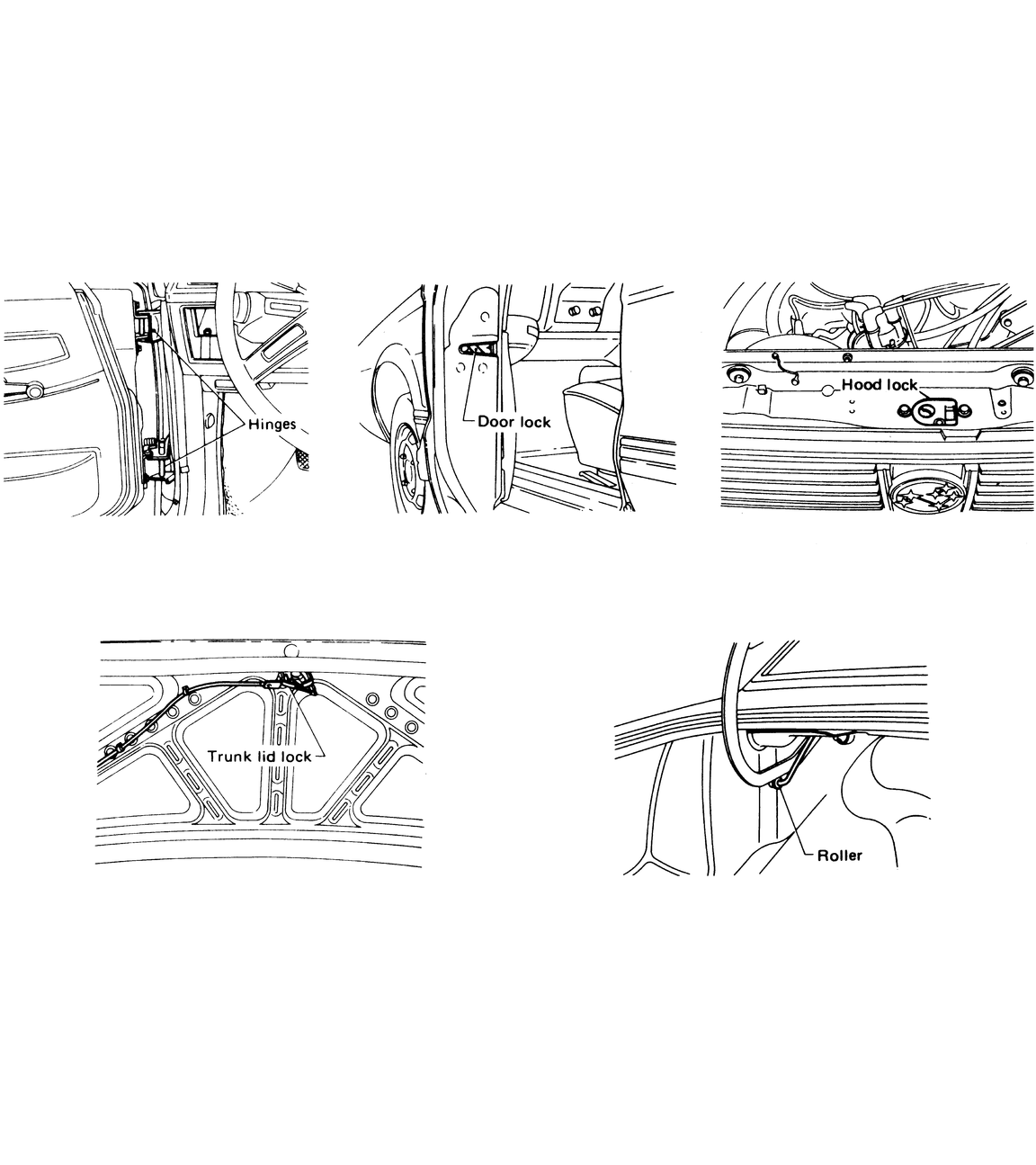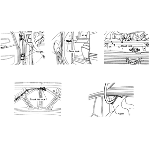 Use grease sparingly on the door and trunk strikers, as they may come into contact with clothing.
