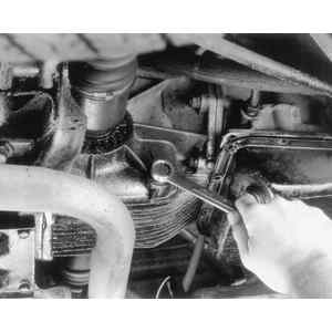 Place a container of adequate capacity beneath the drain plug, located on the lower left side of the differential case, near the left axle shaft.