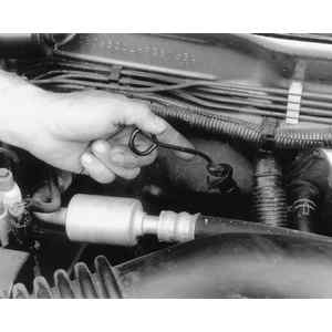 | Fig. 1: Remove the dipstick from the tube — Legacy