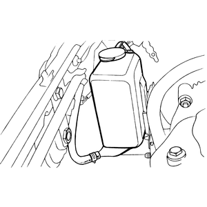 The coolant level should be checked at regular intervals or if the temperature gauge registers HOT (H). The coolant level should not fall below the FULL mark on the side of the reserve tank.