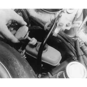 | Fig. 3: Slowly add brake fluid to the reservoir, being