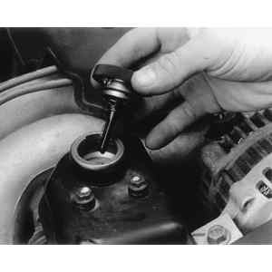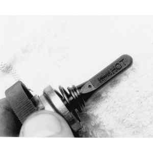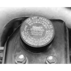 | Fig. 1: Power steering fluid reservoir cap with fluid