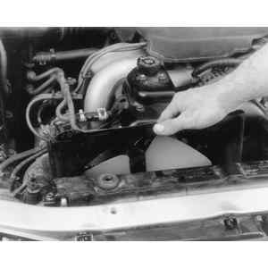 | Fig. 2: Unfasten the fan cover-to-radiator bolts . .