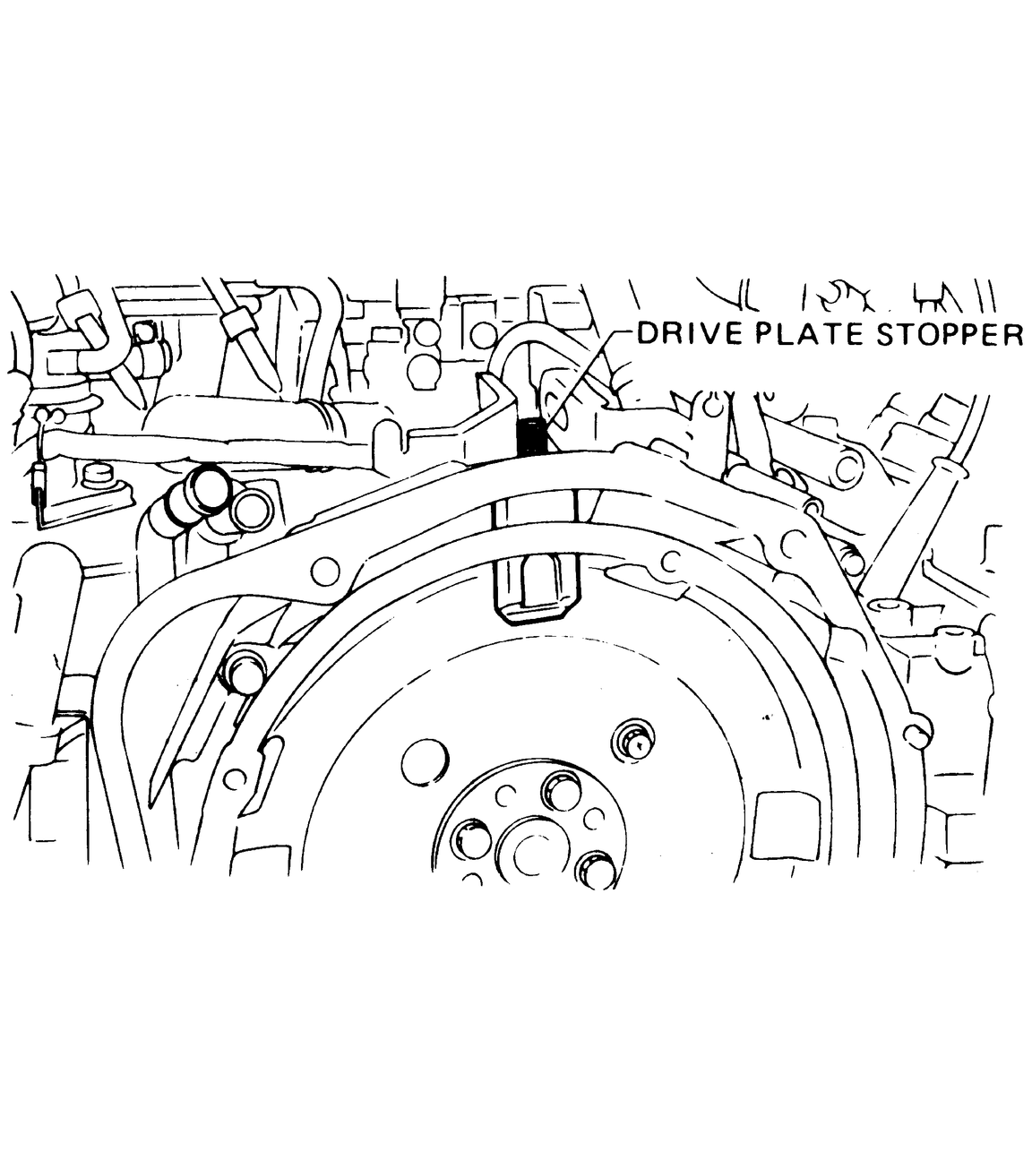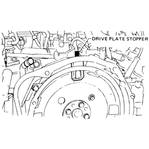 | Fig. 2: Installation of the drive plate stopper — automatic transaxle equipped models |