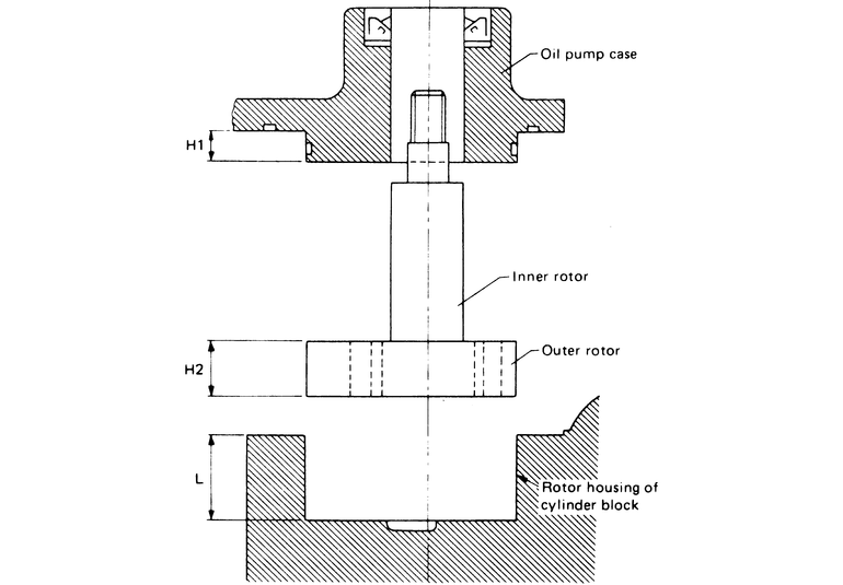 - Measure the clearance between the outer rotor and the cylinder block rotor